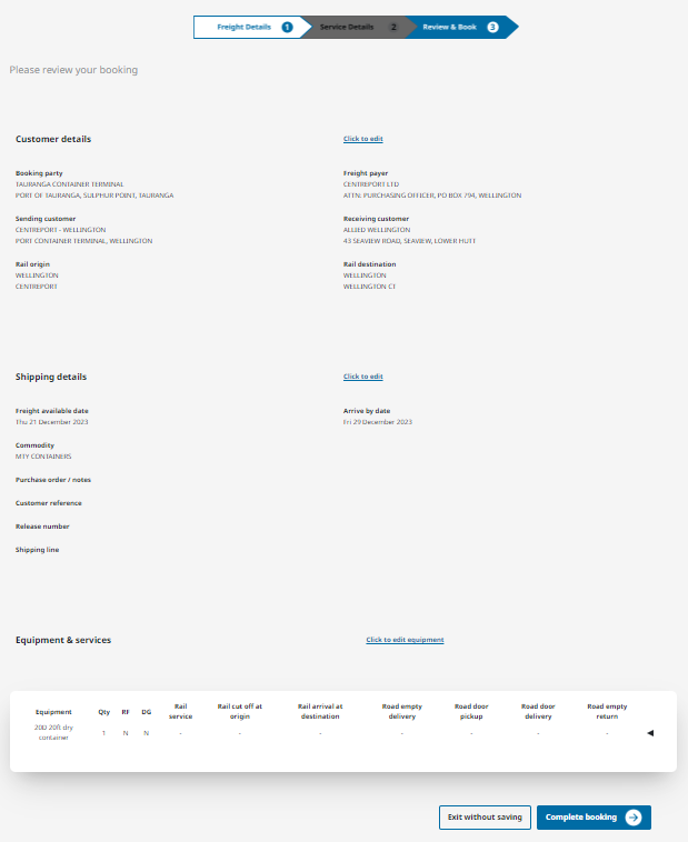 Once you’re happy with all of the details click Complete Booking to finalise your booking with KiwiRail.