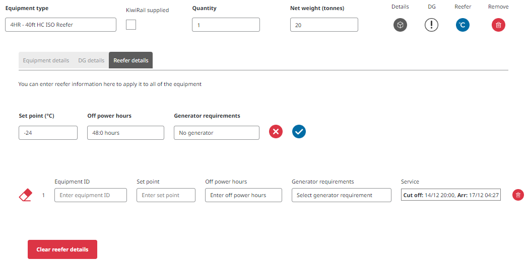 If your container requires reefer care, make sure you select the reefer option when selecting your commodity type.